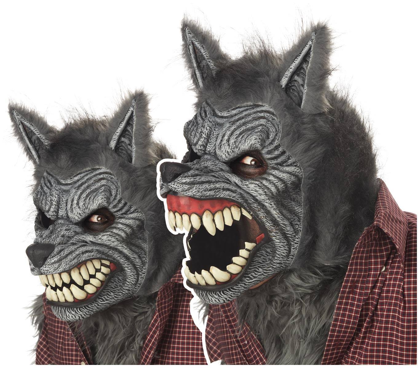The full moon is coming, The Werewolf Ani-Motion mask in Grey is comprised of a plastic mask backing with a foam skin cover. The wearers jaw movement opens the masks mouth and retracts the lips into a snarl. Once the wearers jaw relaxes the mask resets.